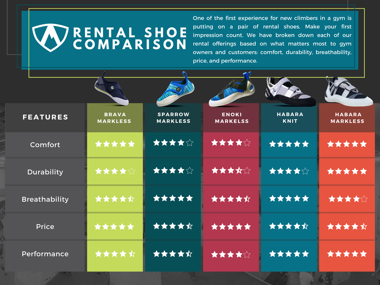 Many competitors rely on cheaper, lower-quality rubber for rental shoes, which may last longer but sacrifices the critical elements that matter most to new climbers—stickiness, performance, and comfort.